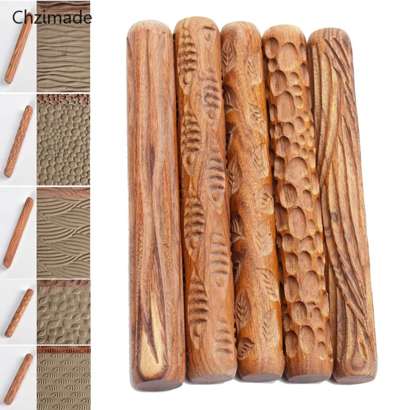 Chzimade глиняная Глина Инструменты текстура древесины Скалка Профилированная лопатка рыбка с пузырьками Лист Волна шаблон керамическая Глин...