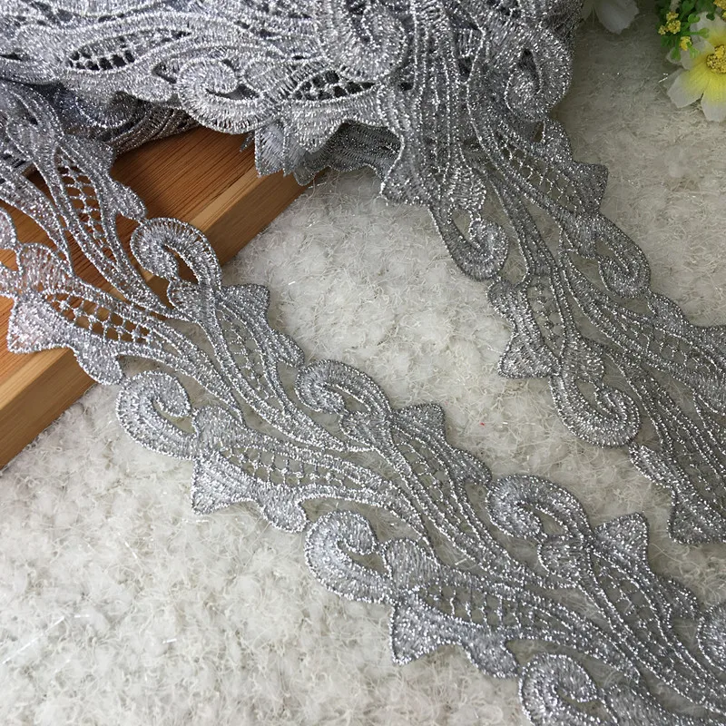 5 см 1,97 "в ширину (10 ярдов/партия); Цвета: серебристый металлик, серый водорастворимое кружево, вышивка, Venise кружевной отделкой