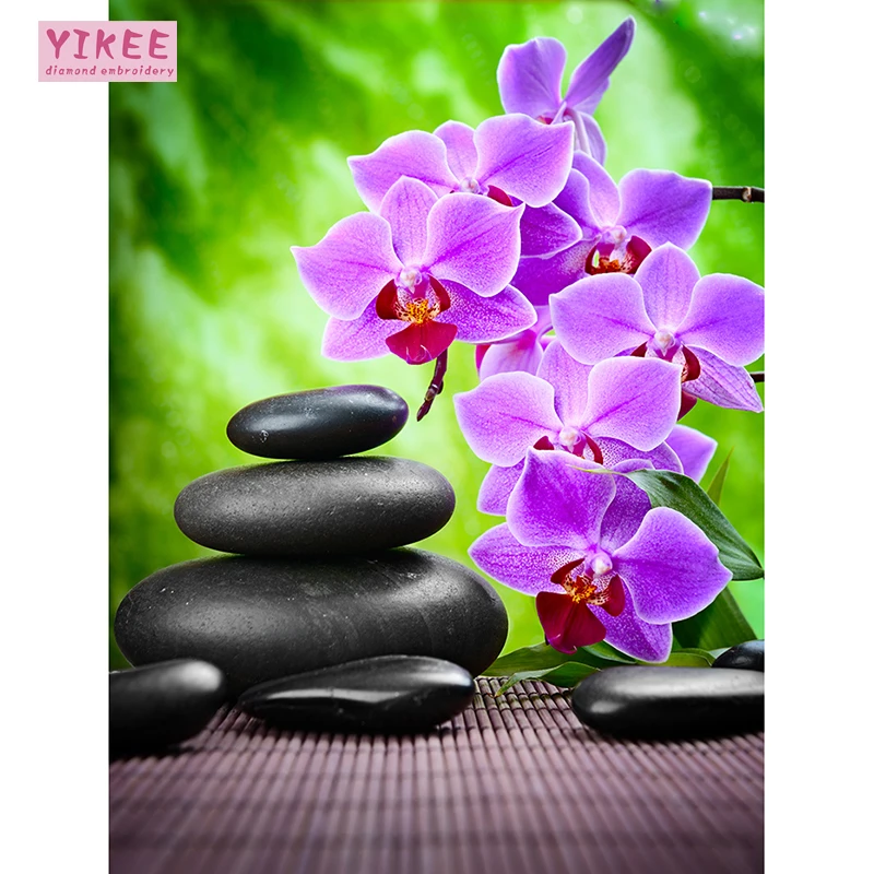 YIKEE 5d diy Алмазная вышивка Орхидея и булыжник, алмазная вышивка, 5d diy, полная квадратная алмазная живопись цветы