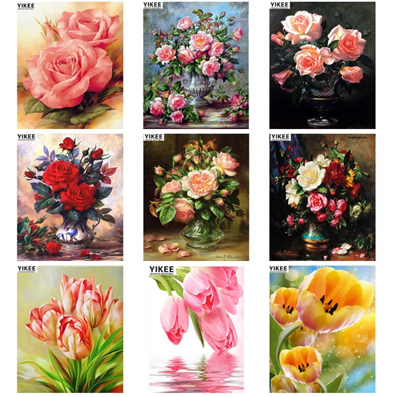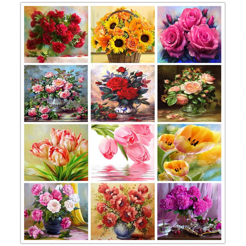 Алмазная вышивка цветы, 5d, diy, алмазная живопись, вышивка крестом, роза, цветы, пион, мозаика, живопись стразы Новый инструмент