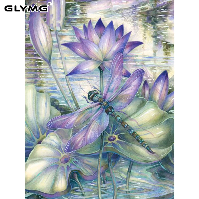 GLymg Diy Алмазная вышивка цветок лотоса пейзаж живопись Стразы Вышивка Полный квадратный европейский домашний Декор стены стикеры
