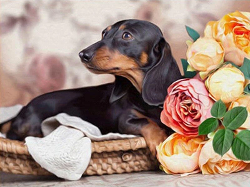 Рукоделие Живопись Вышивка крестиком Стразы Вышивка алмазная живопись полная дрель квадратная собака и розы стены Искусство Декор