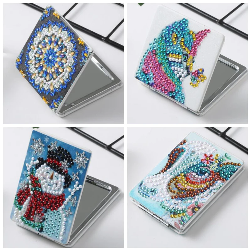 Мини зеркало для макияжа DIY Специальная форма алмазная живопись ультра-тонкое зеркало для макияжа двухстороннее сверло рождественские под...