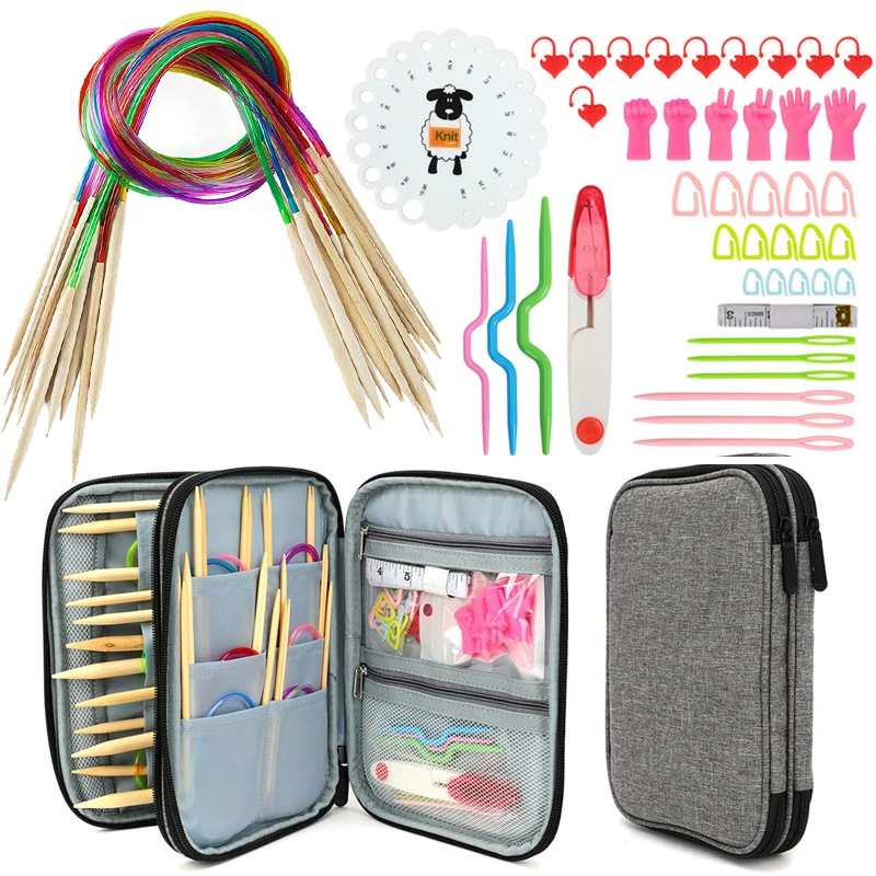 Набор спиц для вязания 18 шт. 60 см круговые Бамбуковые Спицы для вязания набор аксессуаров для шитья DIY пряжа для рукоделия инструменты для вя...