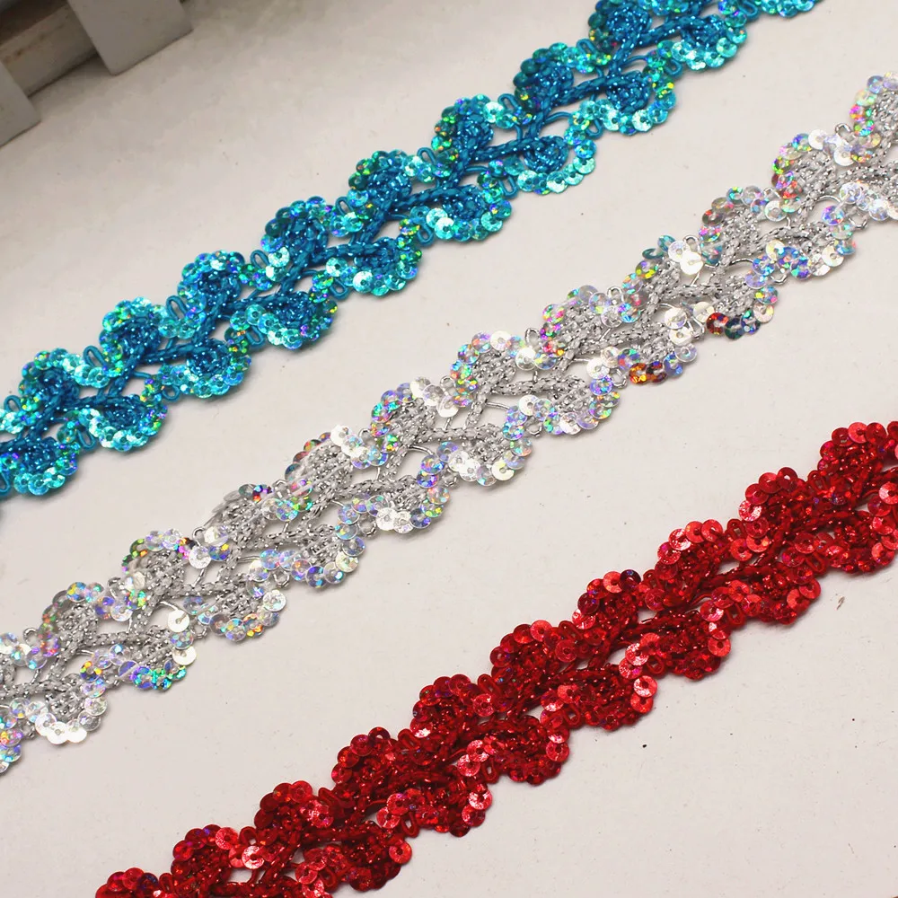 Кружевная лента YACKALASI с блестками и аппликацией, 12 ярдов/партия, лазерная двухугольная тесьма, волнистая тесьма золотого и серебряного цвета, ширина 1 дюйм