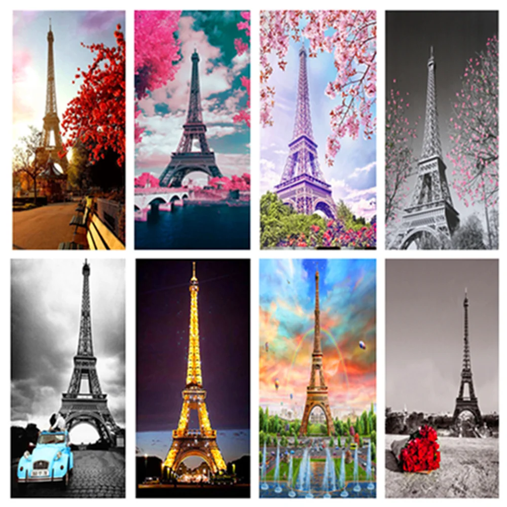Новая Алмазная вышивка Париж Алмазная картина с башней 5D DIY Алмазная вышивка крестиком пейзаж круглый украшения для дом из горного хрусталя...