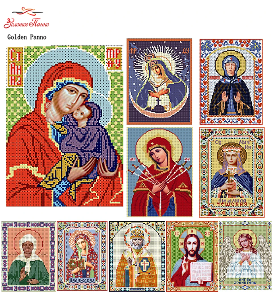 Золотые панно, Рукоделие, сделай сам, бисер, вышивка крестом, вышивка стежком, точная напечатанная живопись, портретный узор, боги