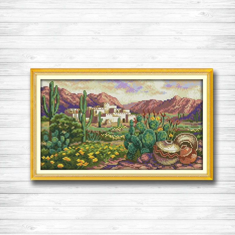 Пустыни сцены Цветок кактуса Европа Пейзажи DMC 14ct 11ct Счетный крест Рукоделие Набор Вышивка комплекты домашнего декора ремесла