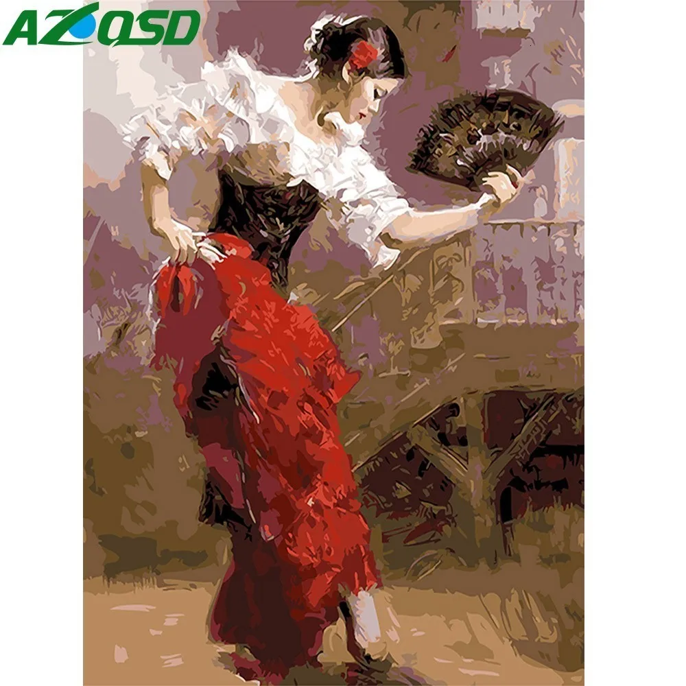 AZQSD масляная краска ing танцующая женщина краска ing по номерам DIY классическая танцовщица Краска Холст Картина Ручная Краска ed Современная K119