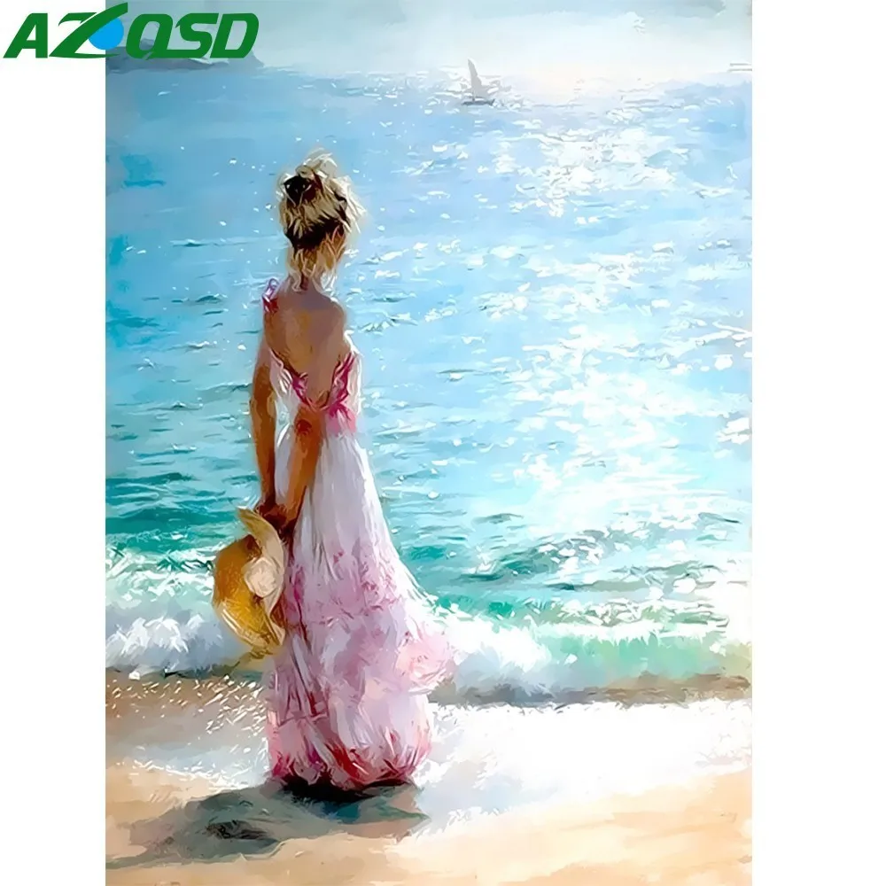 AZQSD побережье написанное масляными красками краски ing по номерам девушка DIY холст картина ручной ed украшения дома SZYH6338