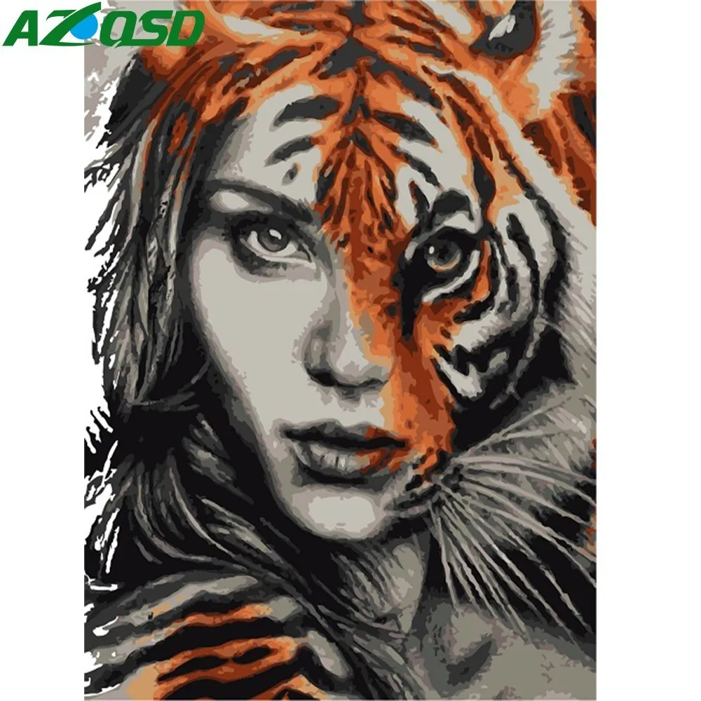 AZQSD DIY изображение тигра по типу масляной живописи девушка портрет фотографии по номерам на холсте настенные панно стены книги по искусству ...