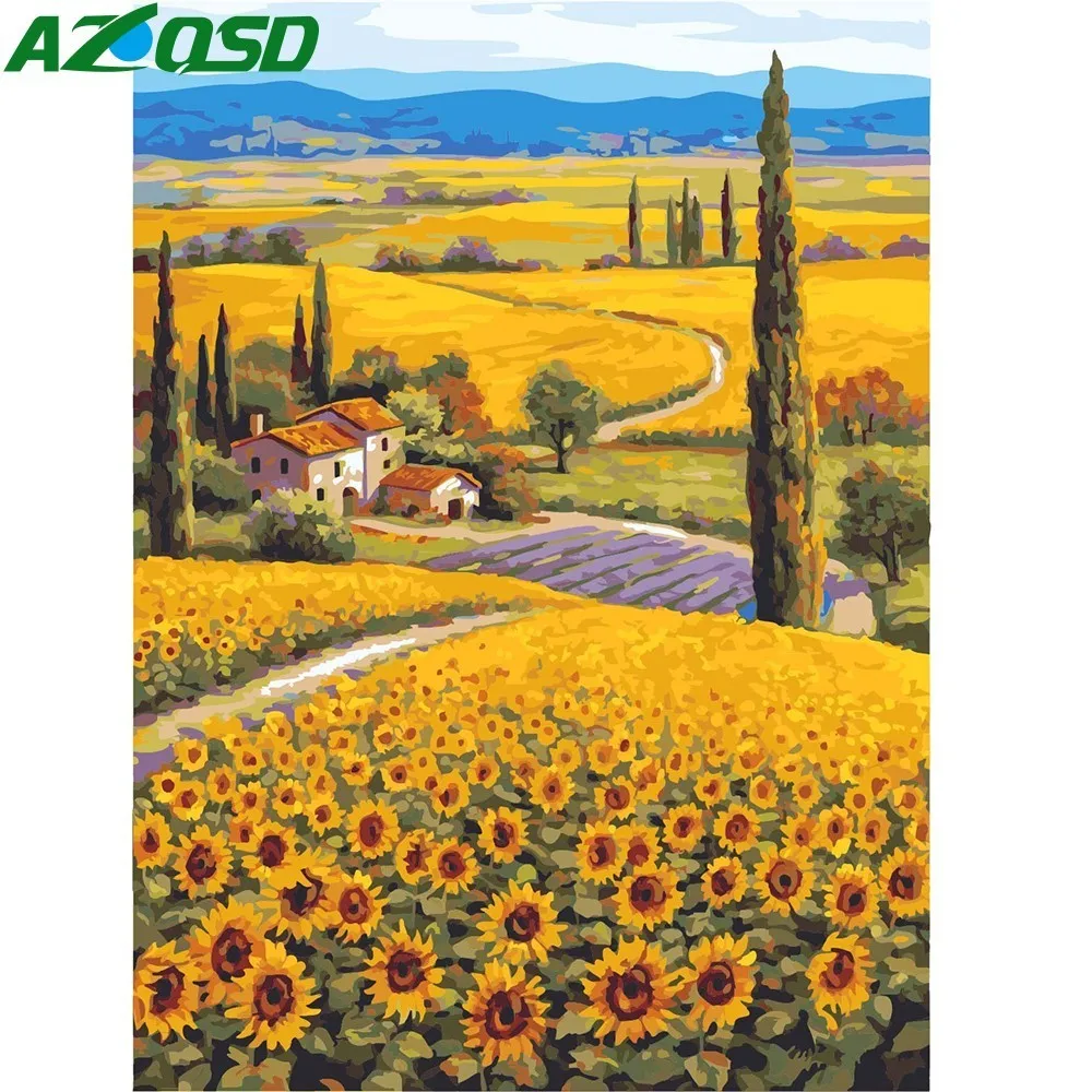 AZQSD масляная краска ing подсолнечное море краска ing по номерам домашний декор из цветов Краска Холст Картина Ручная Краска ed Современная