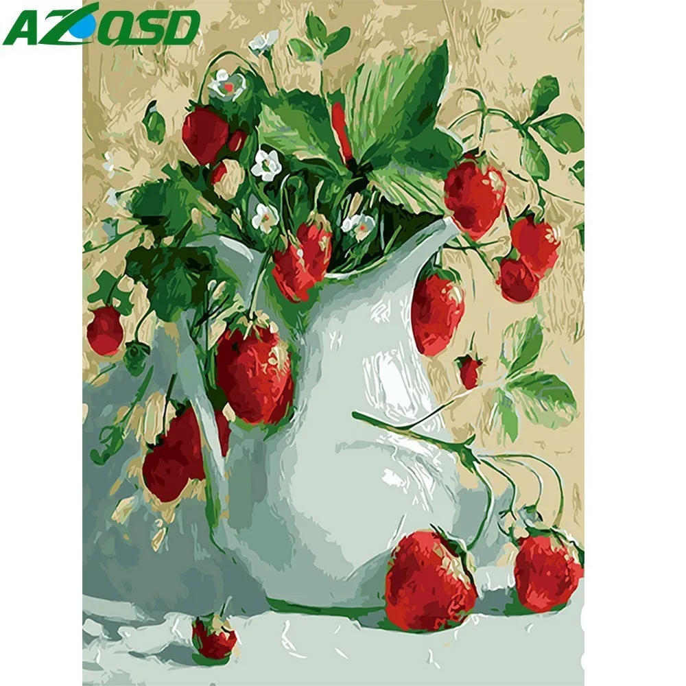 AZQSD масла Краски ing завод Краски ing по номерам DIY абстрактный клубника Краски холст картина ручной Краски ed современный K149
