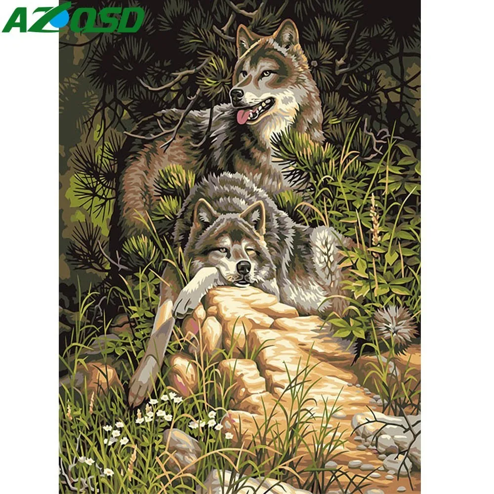 AZQSD картина маслом по номерам волк Ручная роспись холст современный лес стены картину для гостиная книги искусству животного домашний деко...