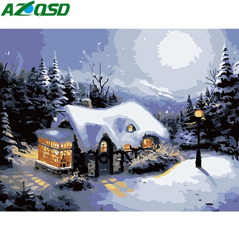 AZQSD масла Краски ing зимние Краски ing по номерам Краски Холст Картина DIY современный пейзаж ручной Краски ed K022