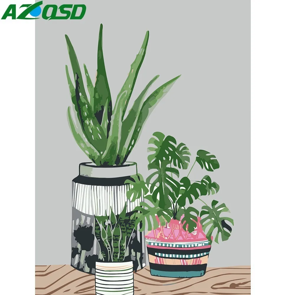 Azqsd картина маслом по номерам горшечных растений Ручная роспись холст стены картину современные DIY настенные цветок украшения дома YHGC124