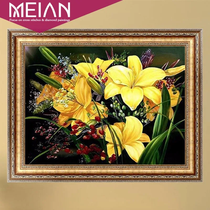 2020 Meian цветок Алмазная вышивка 5d картина цветение цветок Лилия ваза горный хрусталь рукоделие Наборы домашний декор Хрустальная мозаика Искусство