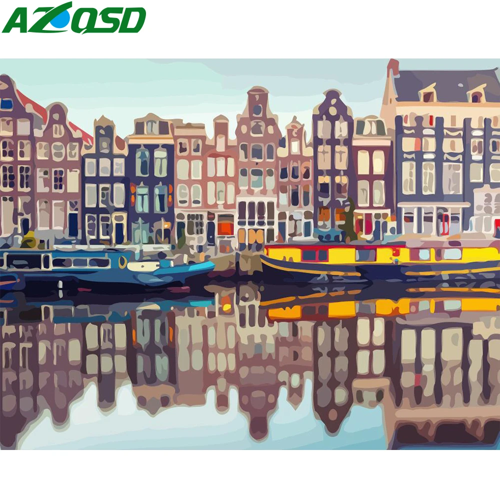 Azqsd 50X40 см без рамки DIY Краска ing по номерам строительные цветные Декорации для дома по номеру холст краски ing наборы ландшафтное искусство