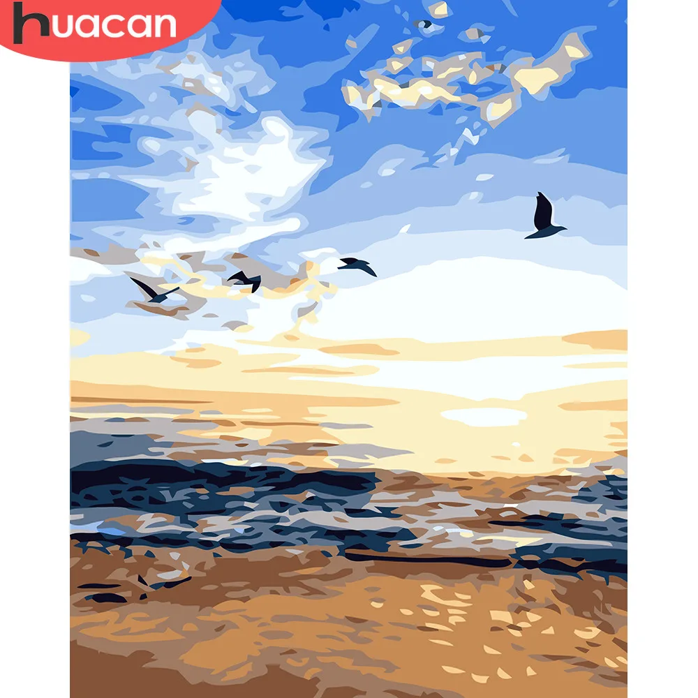 HUACAN картина по номерам небо пейзаж DIY масляная Раскраска по номерам Пляжный Пейзаж Холст Картина Искусство Картины Подарок