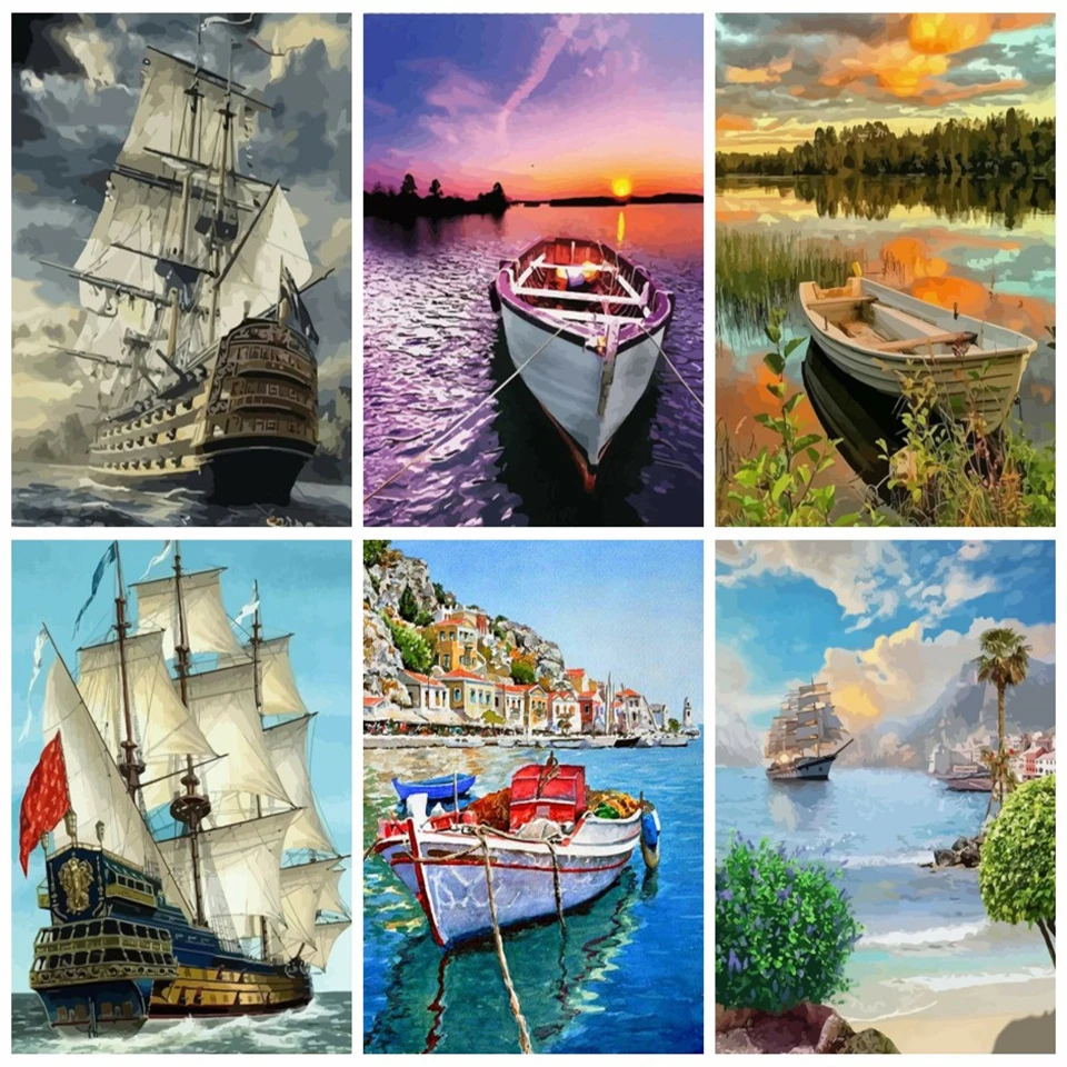 Azqsd масляная краска ing по номерам морские пейзажи краска по номерам корабль Полный наборы краска ing для украшения дома 40x50 см