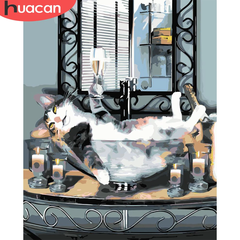 HUACAN картины по номерам рисунок животных на холсте Ручная роспись искусство подарок DIY живопись маслом по номерам кошка комплекты, украшение для дома