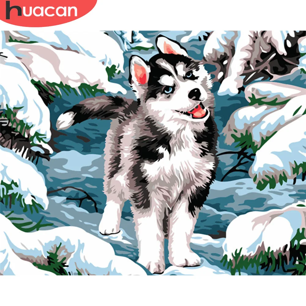 HUACAN Раскраска по номерам собака животные наборы холст для рисования самодельные картины маслом Зима ручная роспись подарок домашний декор