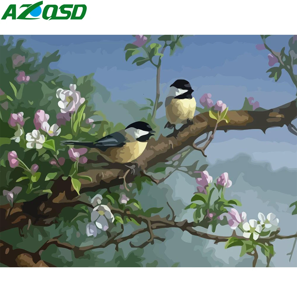Azqsd Unframe масляная краска ing по номерам набор птиц DIY цветные Декорации для дома по номерам на холсте животные акриловая краска уникальный под...