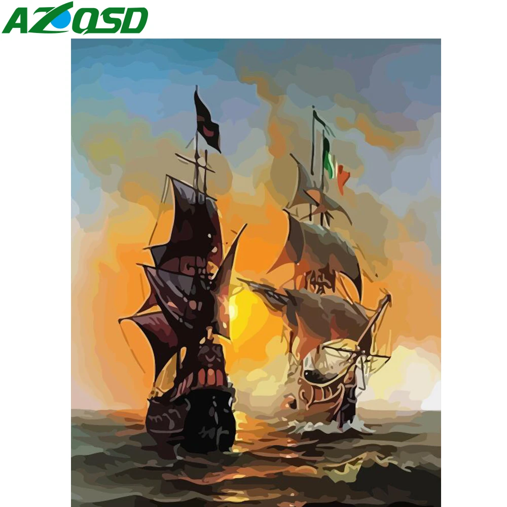 Azqsd краска собственного приготовления по номеру Холст Краска ing наборы корабль 40X50 см нет картина на стене в рамке масляная краска ing по номер...