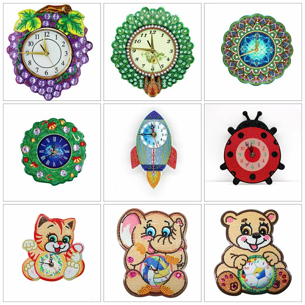 Huacan 5D Алмазная вышивка Часы кустарный мозаика животные украшения для дома подарки