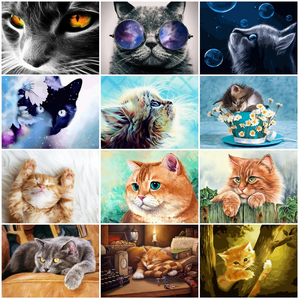 HUACAN краска по номерам кошка животные полный набор картин масляная краска по номерам Декор для дома, с изображением кота DIY подарок