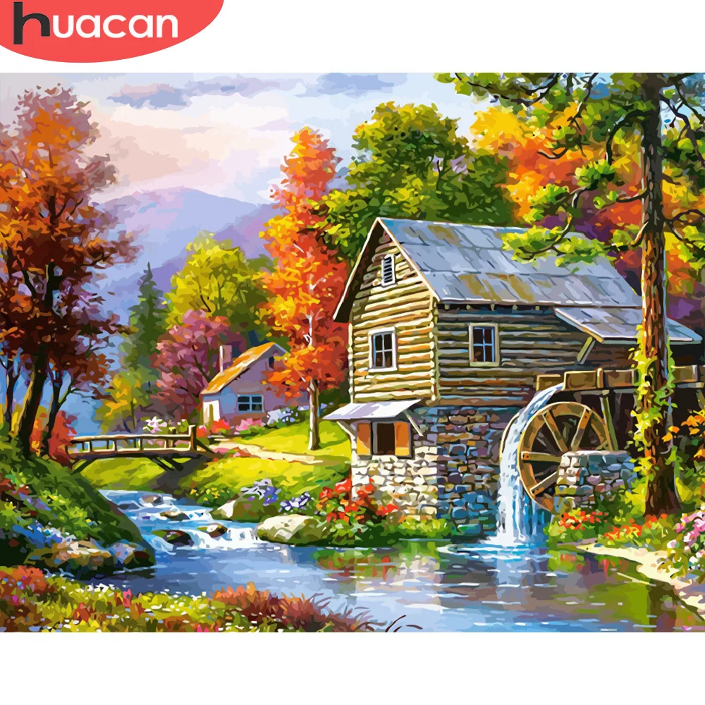 Хуакан своими руками картины маслом по номерам дом пейзаж живопись комплекты номеров холст для рисования расписанный вручную подарок укра...