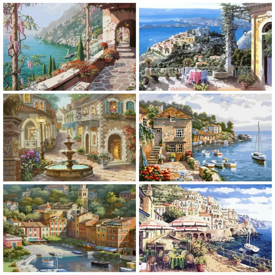 Azqsd Diy картина маслом по номерам пейзаж Unframe ручная роспись подарок Раскраска по номерам холст наборы Декор города для дома