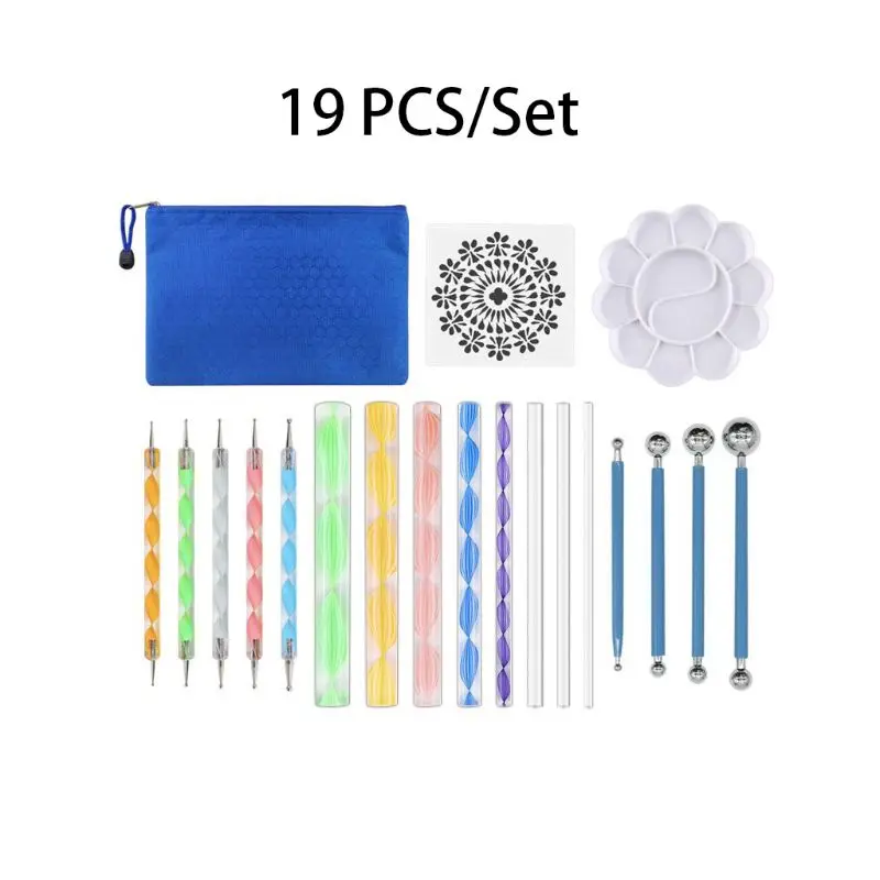 19 шт. набор инструментов для раскрашивания мандалы, инструменты для раскрашивания мандалы, трафареты для шариков, стилус, поднос для окраски камней, раскрашивания, рисования