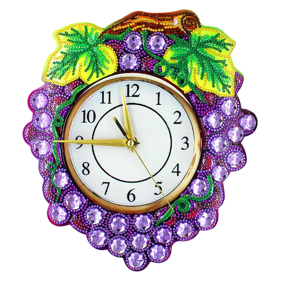 AZQSD алмазная живопись часы с изображением фруктов ручной работы подарок для украшения дома DIY Алмазная мозаика в форме виноградины дрель на...