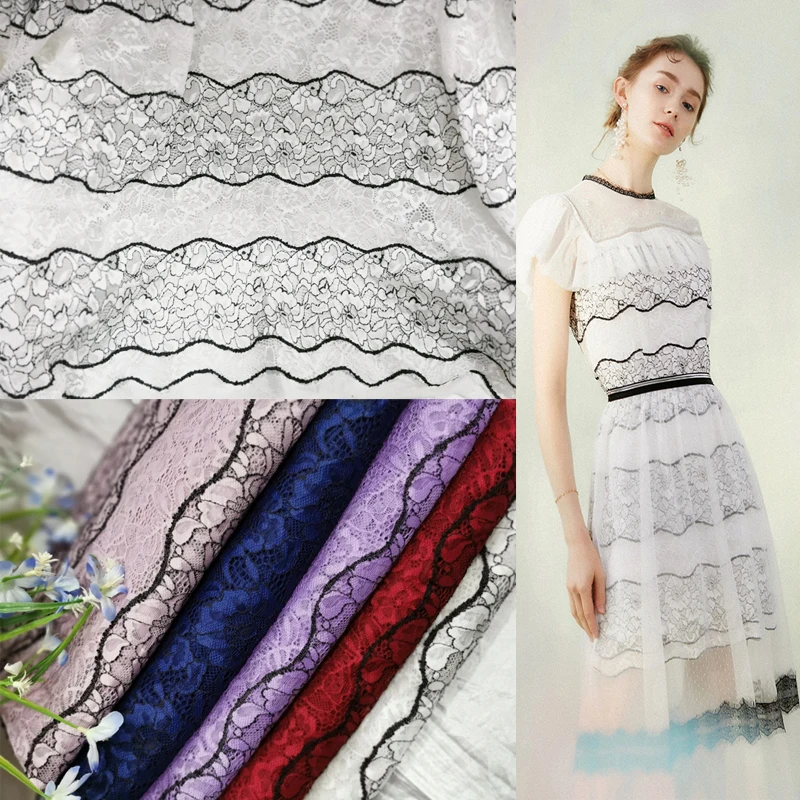 Новый двухцветный стрейч кружевной ткани костюм платье волнистое кружево ажурное кружево