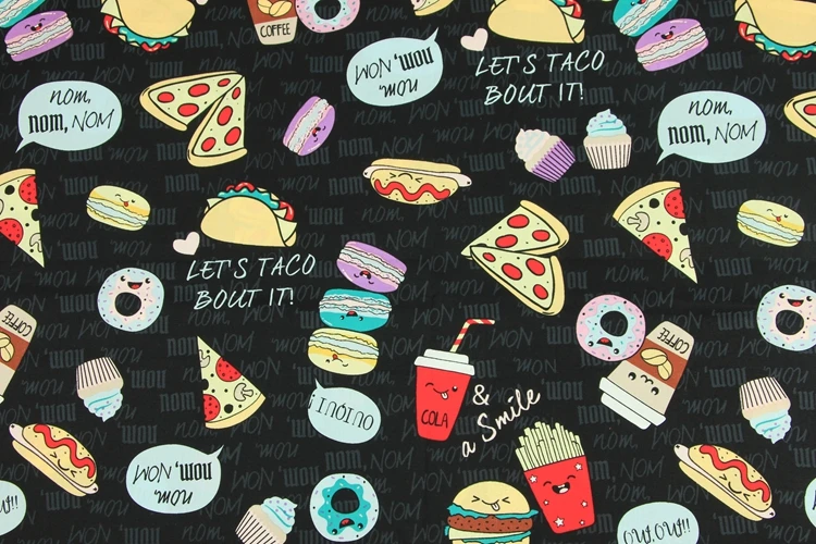 100X140cm гамбургер пицца, пончики, торт, картофель фри, хлопковая ткань с принтом для женщин, платье для девочек, блузка, сделай сам, шитье