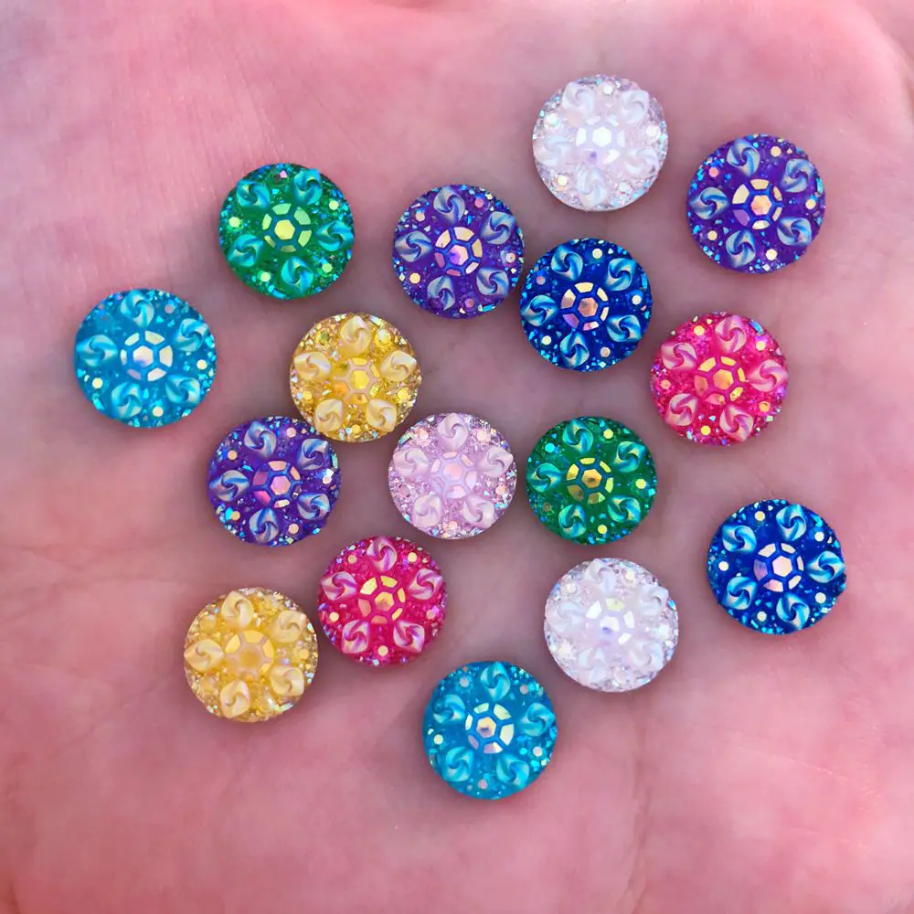 Новинка 500 шт 10 мм Смола Круглый 3D цветок Flatback горный хрусталь Свадебные бутоньерки DIY R43 * 10