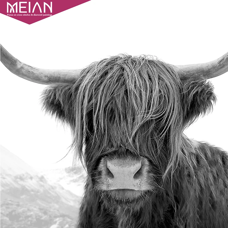 MEIAN 5d DIY Алмазная вышивка Хайленд корова полная круглая Алмазная картина крестиком черно-белая художественная Алмазная мозаика домашний декор