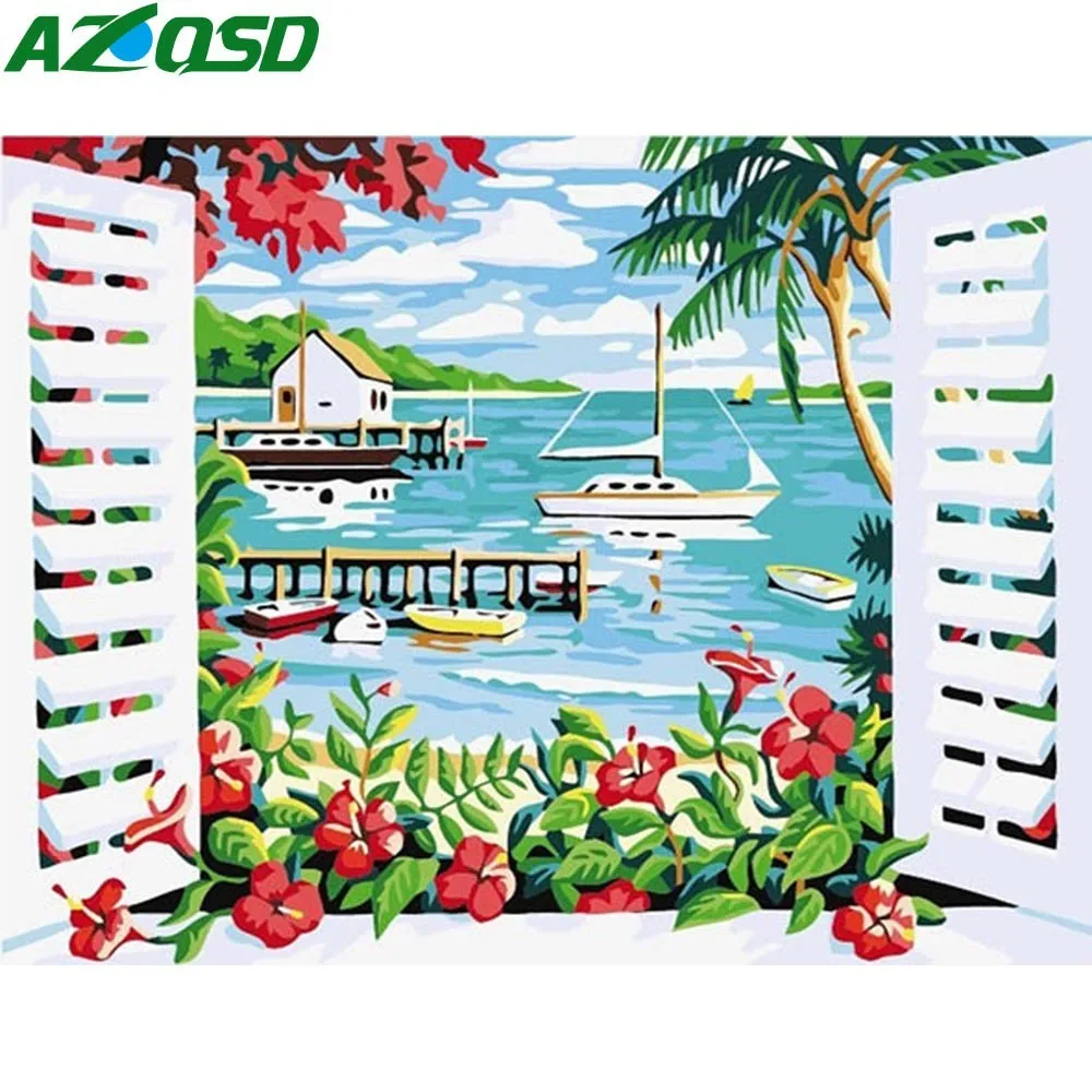 Azqsd DIY картина маслом по номерам вне оконные декорации Ручная роспись холст стены картину украшения дома стены книги искусству K757