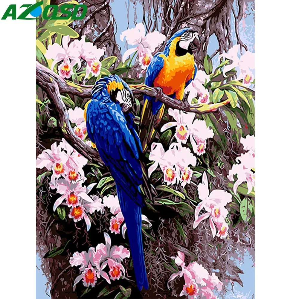 Azqsd DIY картина маслом по номерам Цветок попугай Ручная роспись холст Современная Настенная картина украшения дома картина на стену с животн...