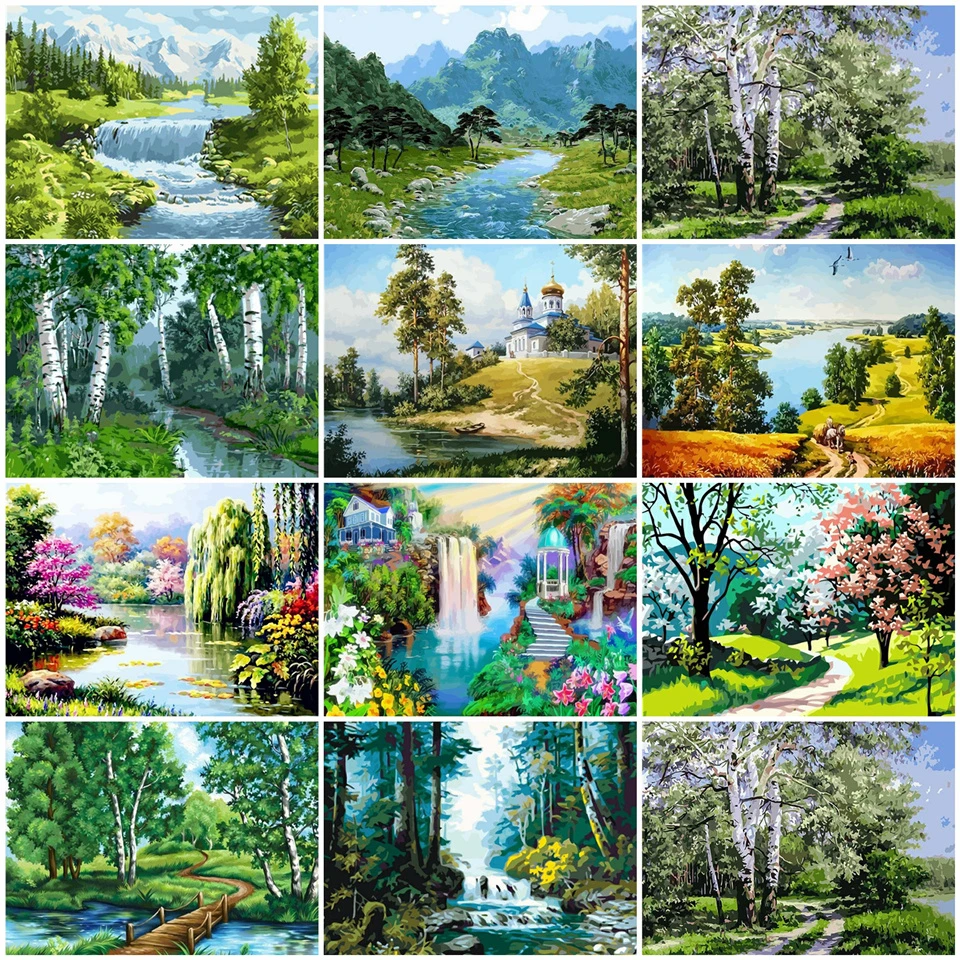 AZQSD картина маслом по номерам пейзаж DIY картины по номерам дерево Пейзаж Летние наборы Рисование холст ручная роспись домашний декор