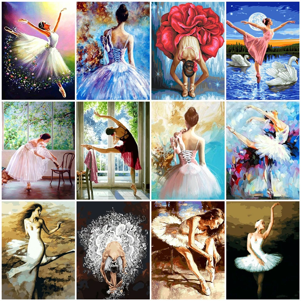 AZQSD Безрамная балетная танцовщица DIY Краска по номерам Акриловая Краска на холсте Ручная Краска ed масляная краска для домашнего декора искусство