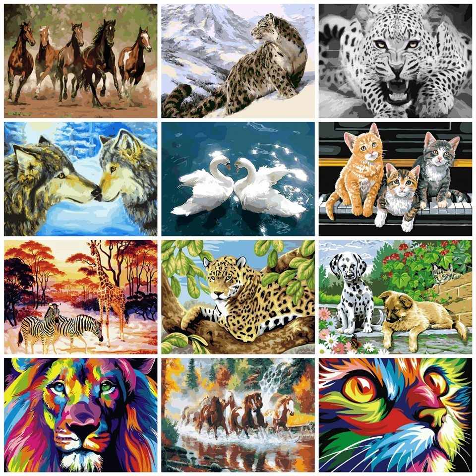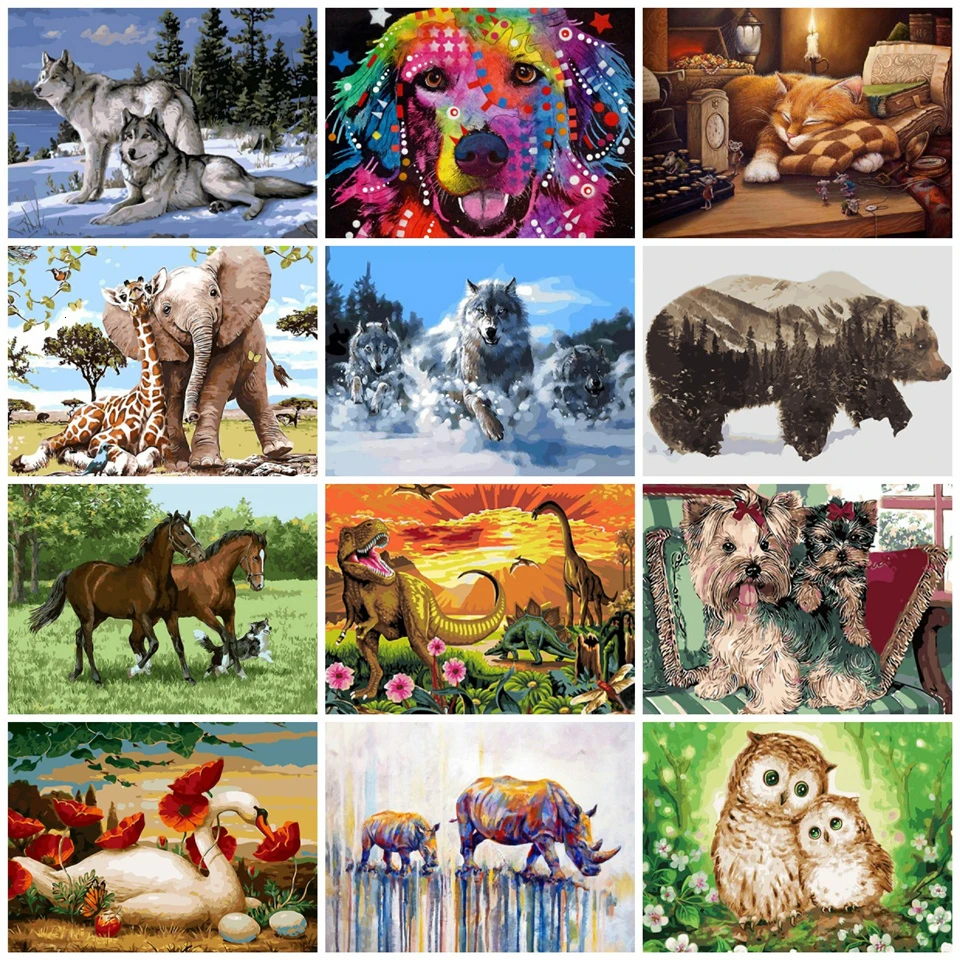картины по номерам животные сад стиль Подарок ручной работы Раскраска по номеру На Холсте Кошки Наборы для Гостиной