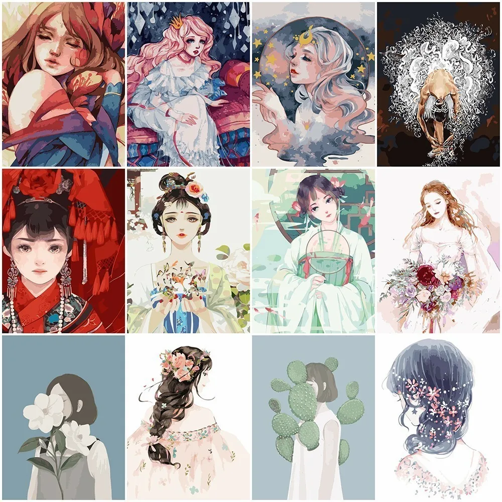 Azqsd маслом по номерам портрет DIY Ручная роспись холст Красивая девушка украшение для дома в классическом стиле Настенная картина искусство ...