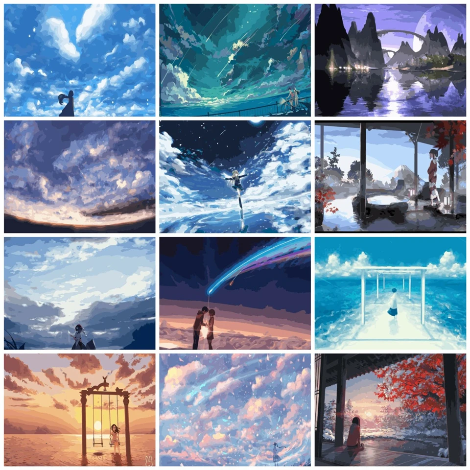 Azqsd Бескаркасный конструктор «сделай сам» маслом картины с цветами по номерам на холсте стены фотографий Sky стены искусства украшения дома ...