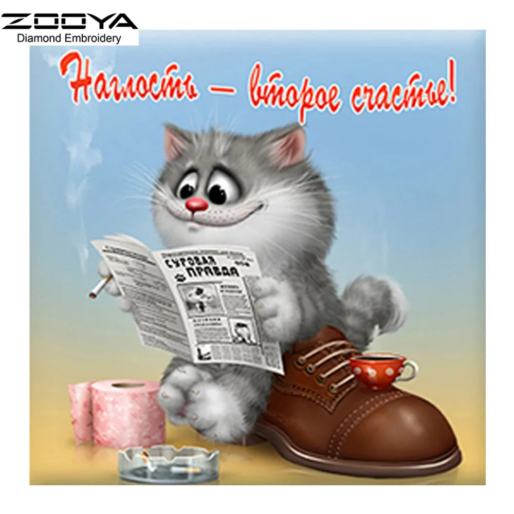 DIY Алмазная вышивка читает газету мультфильм Кот Алмазная картина вышивки крестом квадратный чехол для телефона, украшенный камнями незаве...