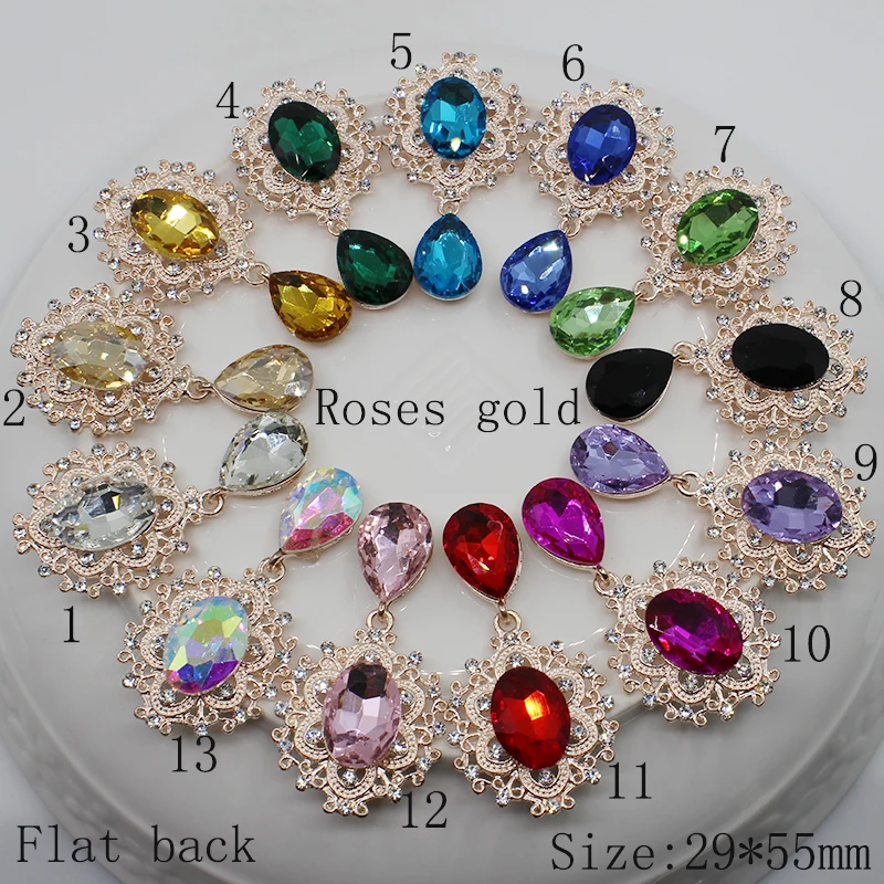 Мода 10 шт./лот 29*55 мм DIY розовое золото аксессуары брошь из сплава со стразами ювелирные украшения Ремесло поставки