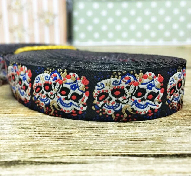 2015 новая оптовая продажа 5/8 "(16mmx10y/много) полиэстер тканые жаккардовые ленты ужасно череп ленты KT 2015 012701