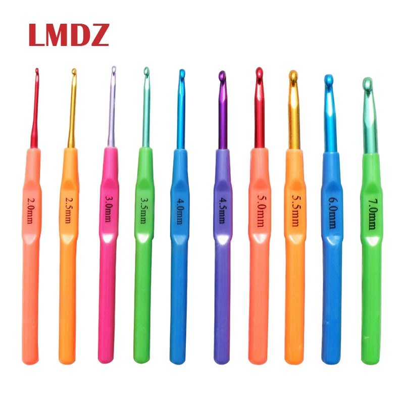 LMDZ 10 размеров пластиковая ручка вязаный крючком ручная вязка свитера и шарфы алюминиевая вязальная игла вязаный крючком 2,5-7 мм