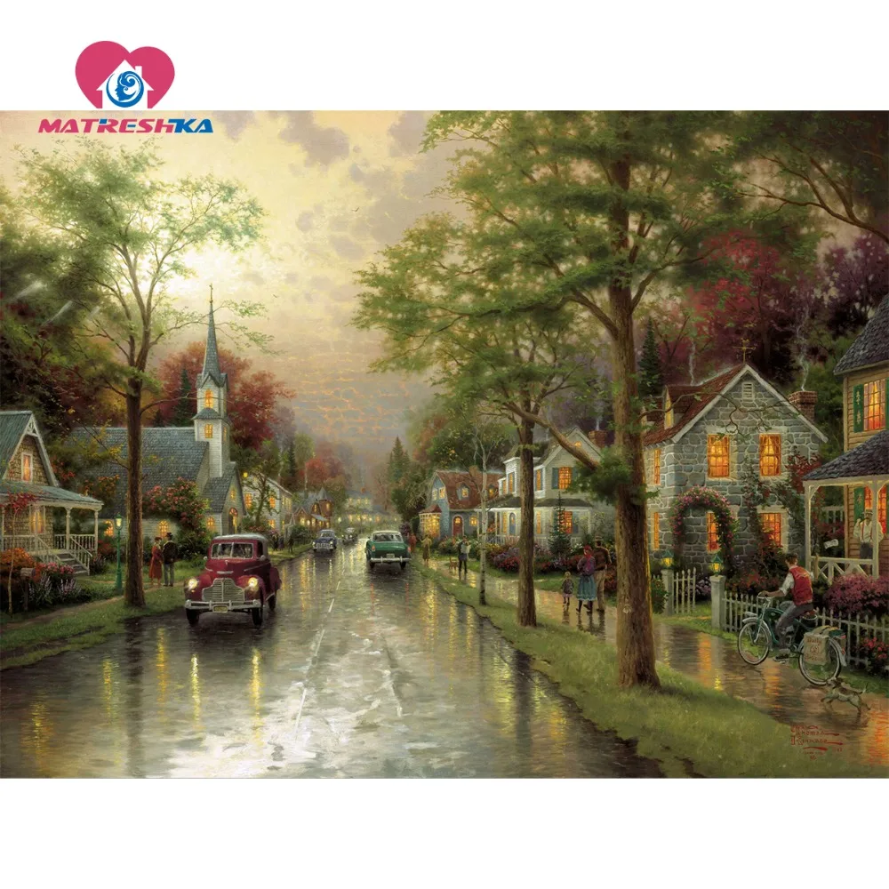 Алмазная вышивка Пейзаж улица в дождь картины из стразов 5D DIY Алмазная картина Алмазная вышивка крестиком Мозаика almaznaya